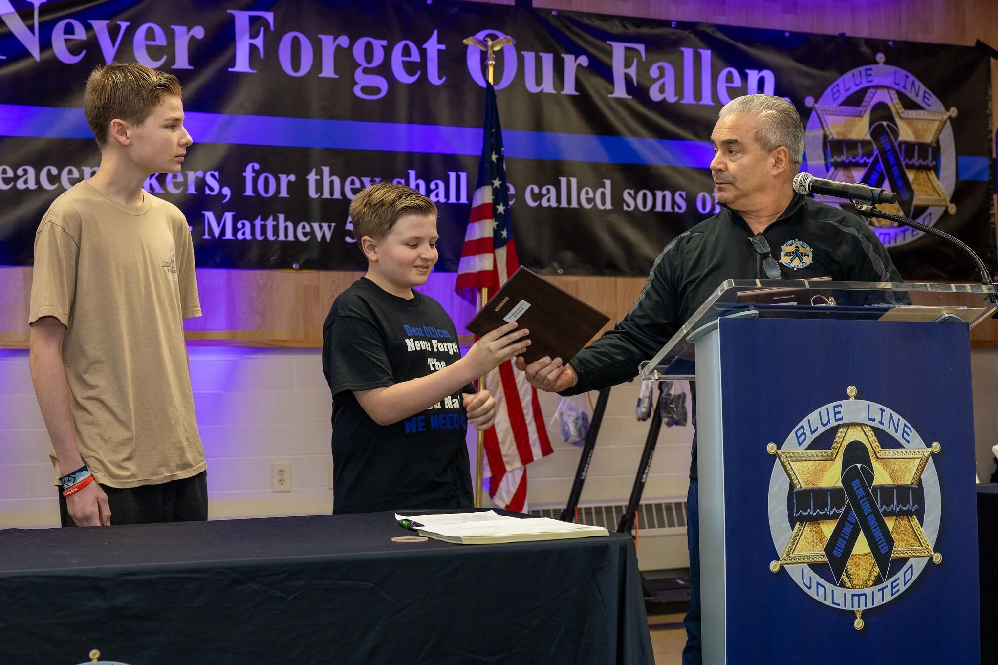 In a moment that captured the true spirit of service and community, brothers Gideon and Josiah Trank were honored with the Blue Line Unlimited Service Award in front of a crowd of more than 700 attendees—earning a powerful and well-deserved standing ovation.